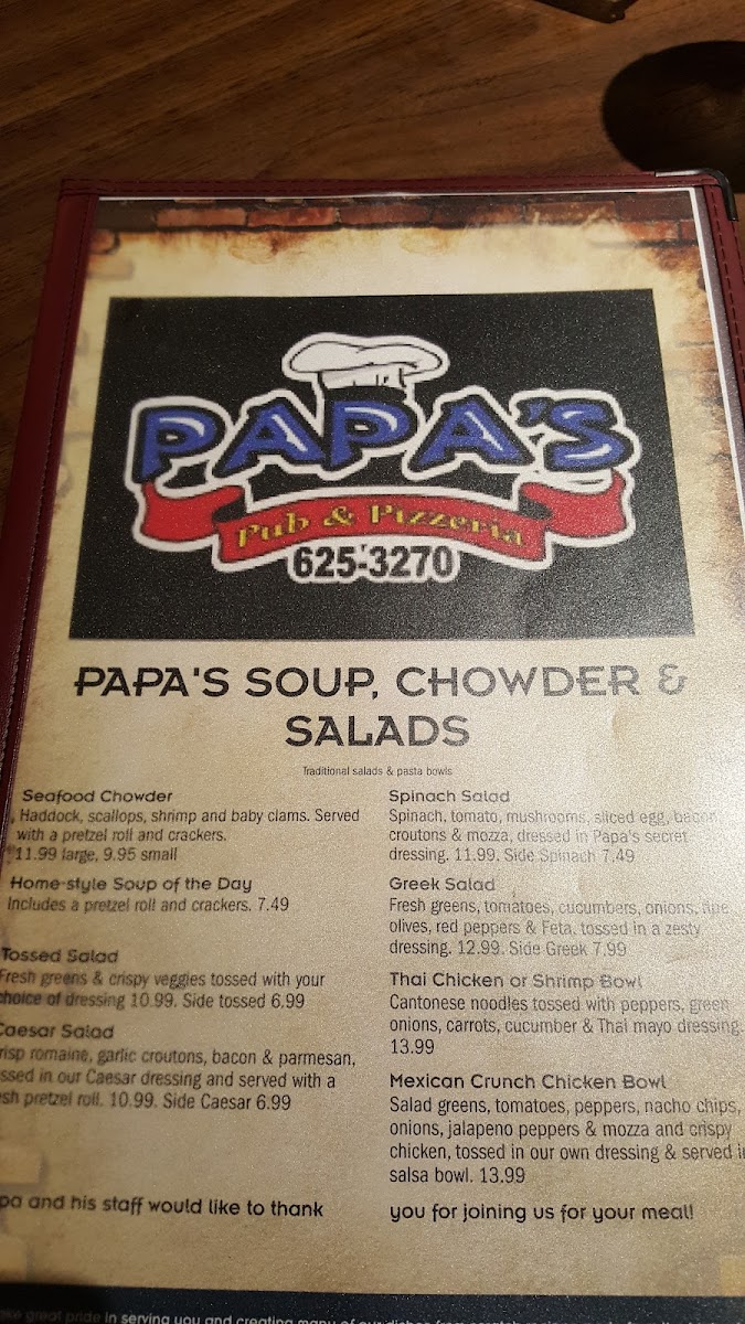 Notably, the salads shine here, with the fresh Greek Salad ($15.49) and the heartwarming Seafood Chowder ($16.99) capturing the essence of local ingredients. Diners rave about the friendly service and vibrant atmosphere, making each visit memorable. Patrons appreciate the healthy, hearty options that surpass fast-food counterparts, making Papa's a beloved gem for both locals and visitors alike.